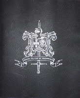 Encadernação em brochura com o brasão heráldico da Região Militar de Moçambique gravado a prata sobre o fundo negro da capa.