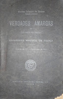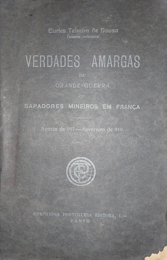 SOUSA, Eurico Teixeira de - VERDADES AMARGAS DA GRANDE-GUERRA OU SAPADORES MINEIROS EM FRANÇA : Agosto de 917 - Fevereiro de 919. Por... Tenente-miliciano. Porto, Companhia Portuguesa Editora, L.da, [s.d.]. In-8.º (19,5cm) de 428 p. ; B.